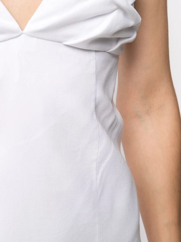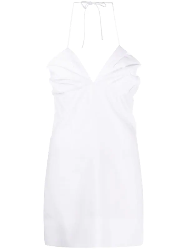 Dos-nu, fines bretelles, bretelle ajustable au dos, talon ouvert. Couleur : blanc.