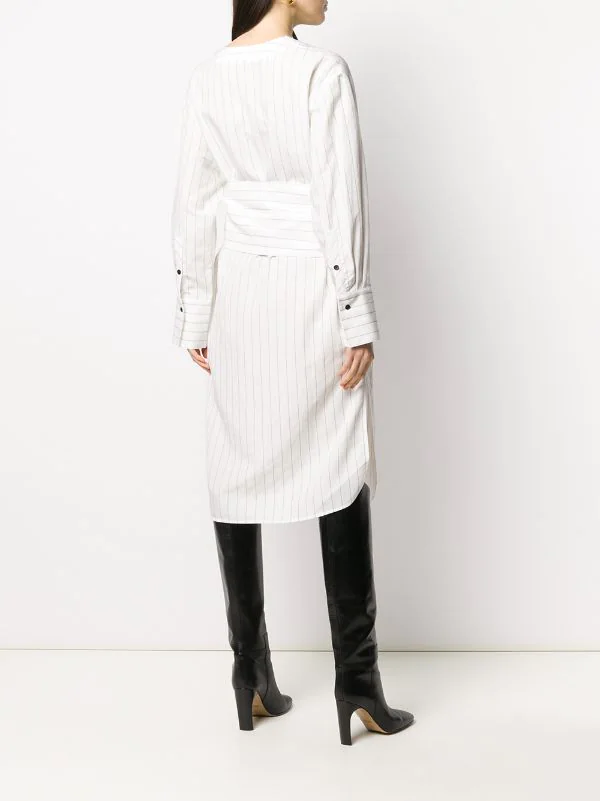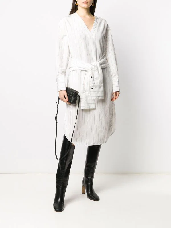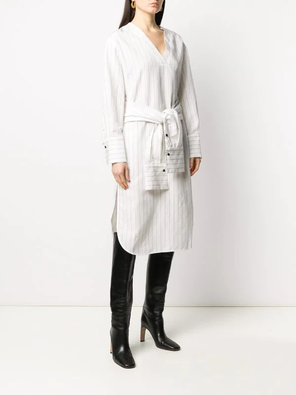 Col v, ourlet incurvé, fentes latérales, manches à poignets boutonnés. Couleur : blanc.