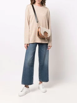 ( Nouvelle Collection ) 12 STOREEZ BEIGE STRIPE T-shirt Rayé à Manches Longues Femme