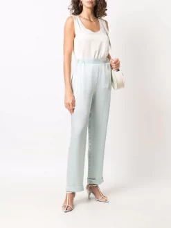 12 STOREEZ Pantalon En Cuir Ă Lien De Resserrage Cream White
