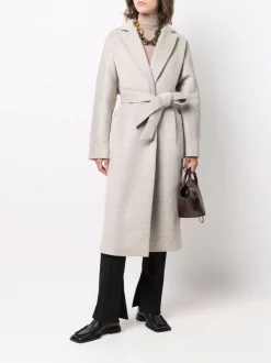 12 STOREEZ GREY BEIGE Manteau Mi-long à Taille Ceinturée Femme