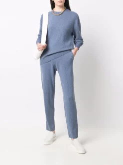 12 STOREEZ Pantalon De Jogging En Maille Ă Lien De Resserrage Grey Blue