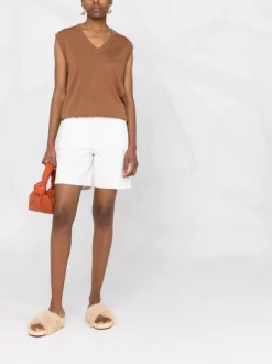 ( Nouvelle Collection ) 12 STOREEZ DARK CAMEL Débardeur En Laine Mérinos Mélangée Femme
