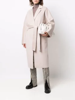 12 STOREEZ Manteau En Laine à Taille Ceinturée Beige Melange