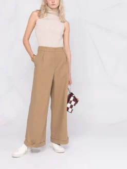 ( Nouvelle Collection ) 12 STOREEZ Bitter Chocolate Pantalon Ample à Taille Haute Femme
