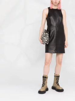 ( Nouvelle Collection ) 12 STOREEZ Robe Courte En Cuir à Design Sans Manches BLACK